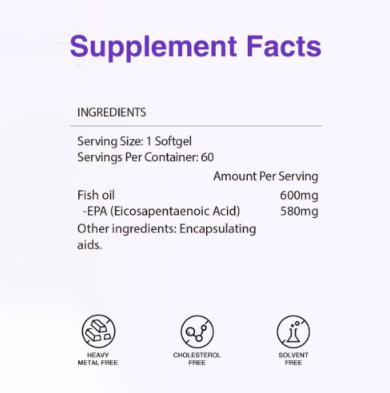 每粒提供600mg rTG型Omega-3鱼油,经过高纯净提取,其中97%为EPA(二十碳五烯酸)。rTG(再酯化三酸甘油脂)型式具有更高生物利用度,帮助EPA更好被人体吸收与利用,发挥抗炎、护心及提升脑功能等关键作用。