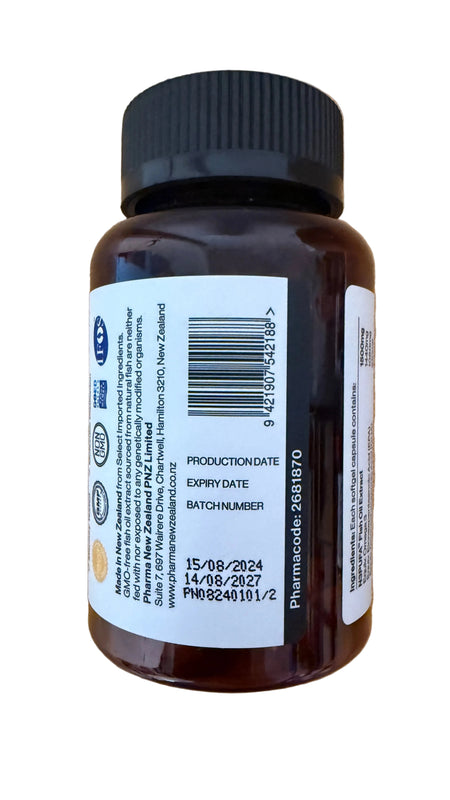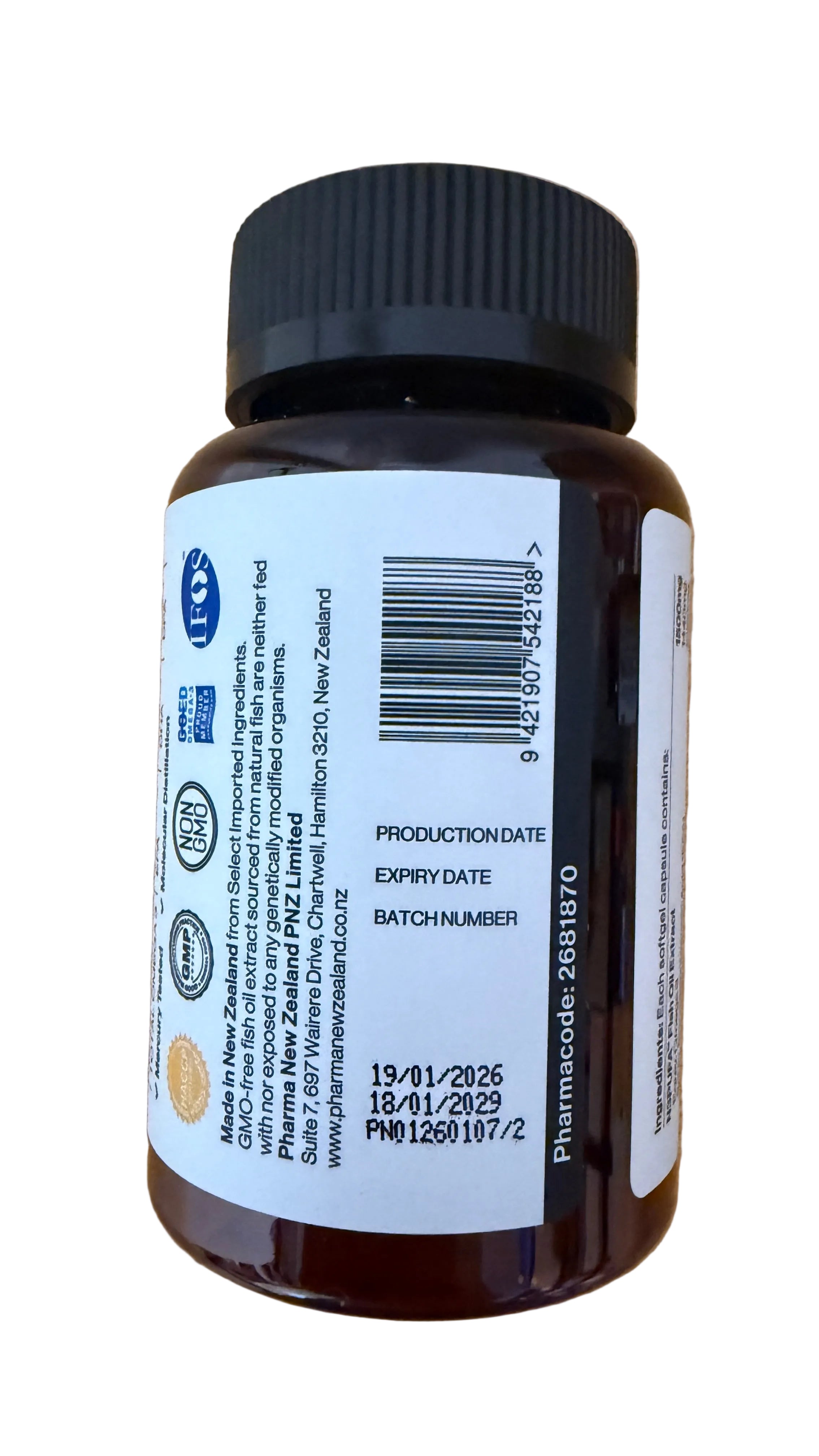 Pharma New Zealand™ Fish Oil Extract Ultra Pure 1440mg Omega3 ≥96% (60 Capsules)
